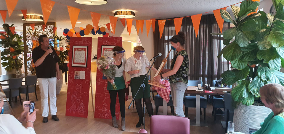 Glimmend van TROTS tonen bewoners hun naasten en medebewoners hun verhaal. De tekeningen nodigen direct uit tot VERDIEPING of VERBREDING van de VERHALEN. Door de tentoonstelling worden bezoekers ook geïnspireerd om elkaar persoonlijke vragen te stellen en HERINNERINGEN op te halen. Kortom: alle bewoners, hun naasten en zorgprofessionals worden hierdoor “OPGEFRIST”, direct door De Opfrisdames, of indirect door de tentoonstelling.